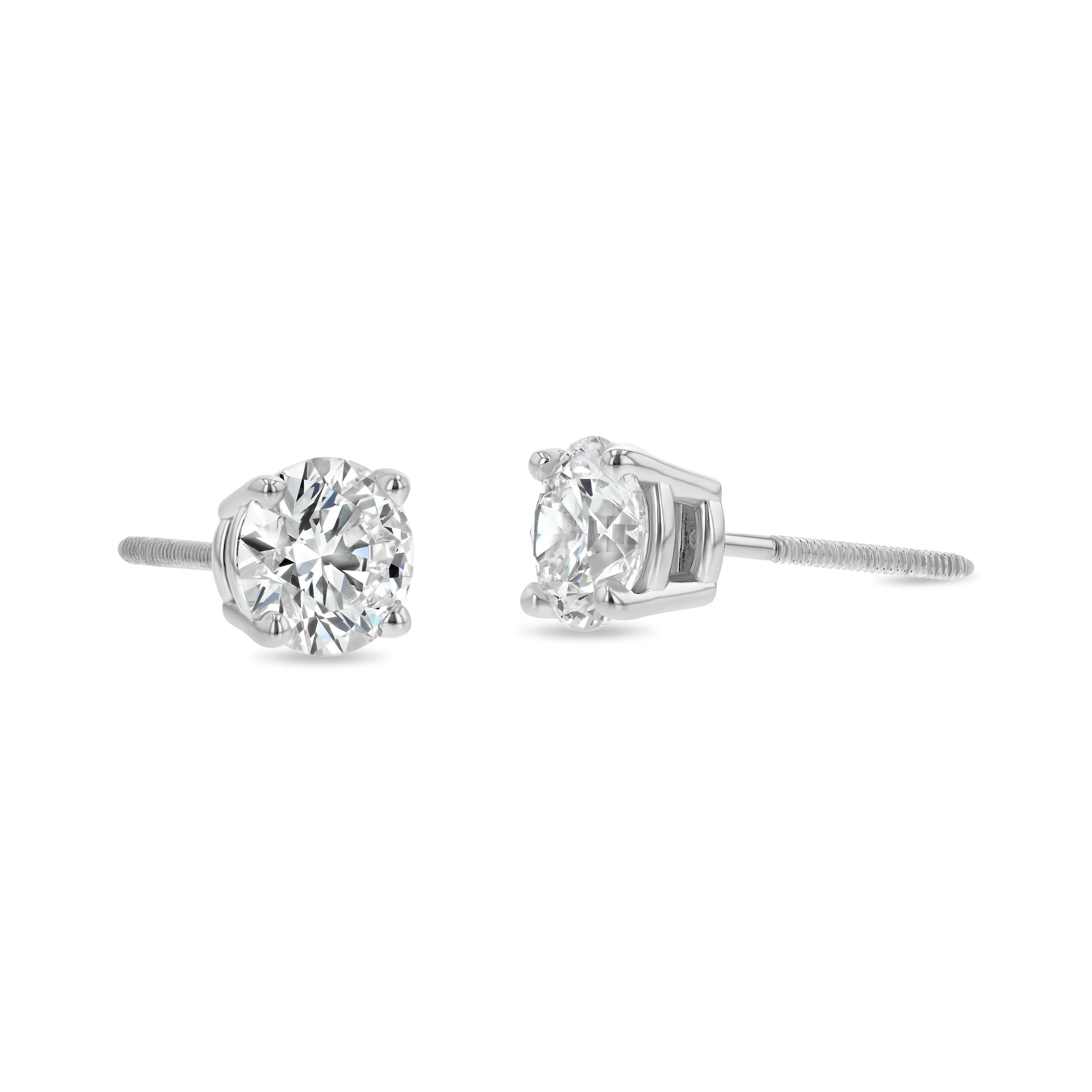 ต่างหูเพชรทรงกลมเจียระไนแบบ 4 กรงเล็บ แพลทินัม (น้ำหนักรวม 1 กะรัต, ความสะอาด Si1-si2, สี J-k)