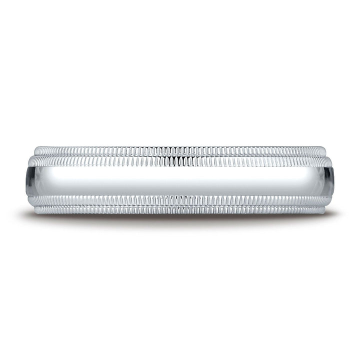 แหวนวงนี้ทำจากแพลทินัมสวยงาม ขนาด 5 มม. มีพื้นผิวโค้งเล็กน้อย พร้อมด้วยลายมิลเกรนคู่และการออกแบบให้สวมใส่สบายด้านใน เพื่อความสบายที่น่าจดจำ