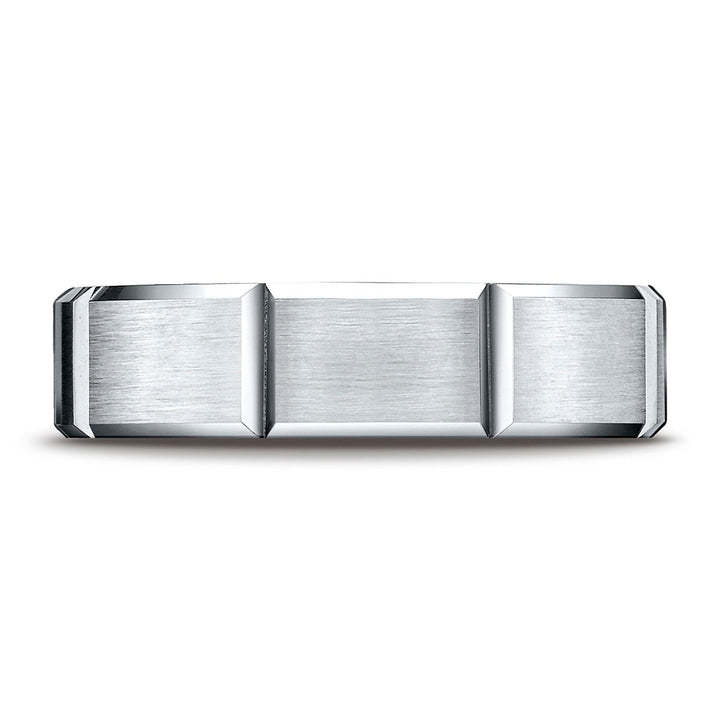 แหวนดีไซน์แกะสลักผิวด้านขนาด 6 มม. รุ่น Platinum Comfort-fit นี้มีร่องแนวตั้งที่แข็งแรงตามแนวกลางเพื่อรูปลักษณ์ที่ประณีตและทันสมัยแบบอุตสาหกรรม