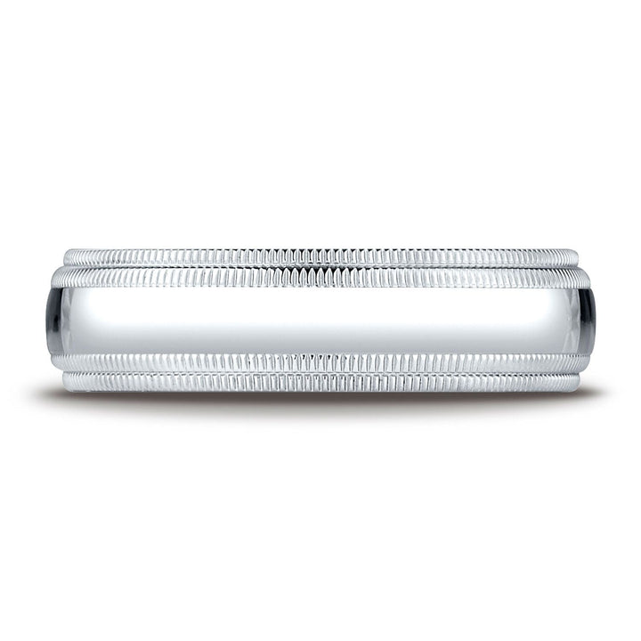 แหวนแพลตตินั่มสวยงามขนาด 6 มม. นี้มีพื้นผิวโค้งเล็กน้อยพร้อมด้วยลายมิลเกรนคู่และการออกแบบให้สวมใส่สบายด้านในเพื่อความสบายที่น่าจดจำ
