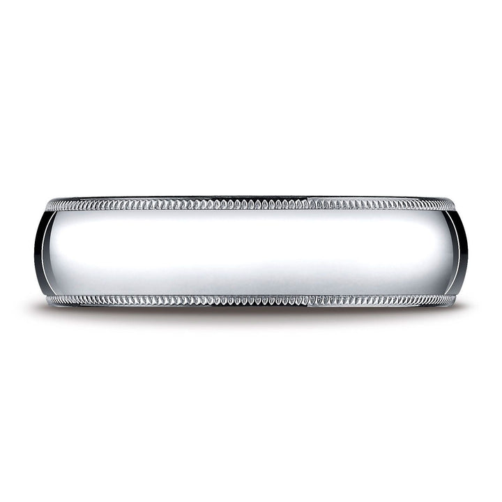 แหวนแพลทินัม 6 มม. แบบโค้งเล็กน้อย ดีไซน์สวมใส่สบายมาตรฐาน พร้อมลายมิลเกรน