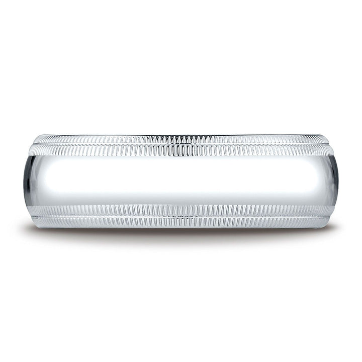 แหวนแพลทินัม 7 มม. แบบโค้งเล็กน้อย ดีไซน์สวมใส่สบายมาตรฐาน พร้อมลายมิลเกรนคู่