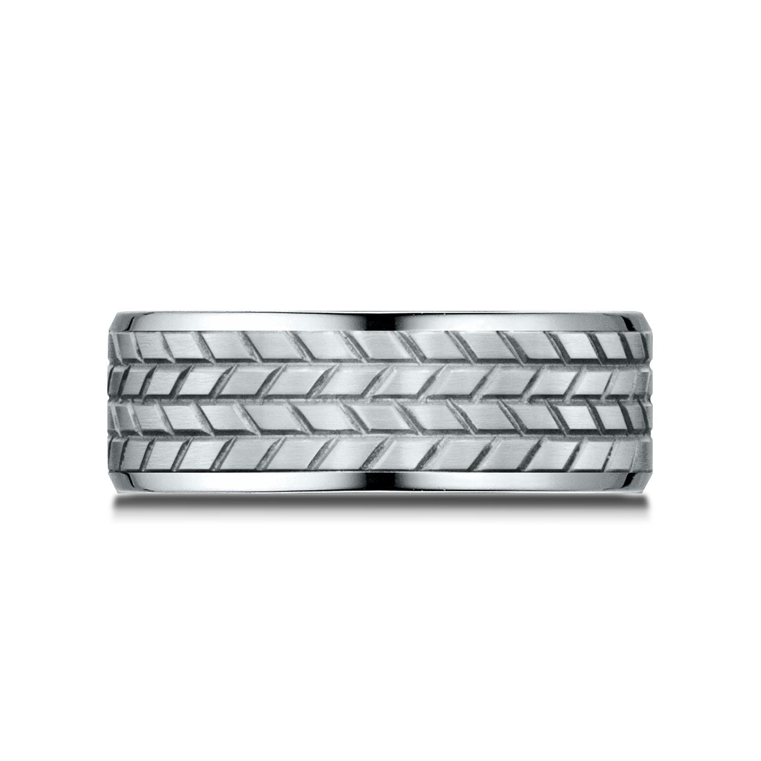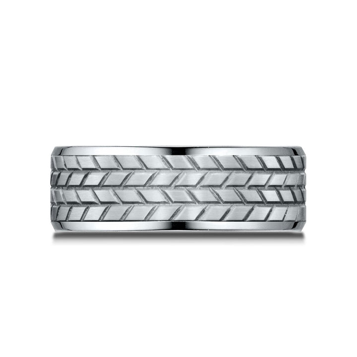 การส่งสัญญาณที่ซับซ้อนถึงความรักของคุณที่มีต่อเครื่องจักรประสิทธิภาพสูง แถบสวมใส่สบายขนาด 8 มม. แพลตตินัมนี้มีลวดลายร่องที่สวยงามซึ่งเสริมด้วยขอบเอียงขัดเงาสูง