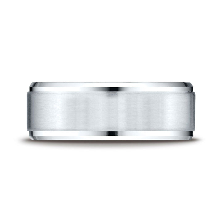 แหวนดีไซน์แกะสลักแบบคลาสสิกสไตล์แพลตตินัมขนาด 8 มม. ที่มีความสบายในการสวมใส่และพื้นผิวด้าน พร้อมขอบแบบเอียงหยดน้ำ