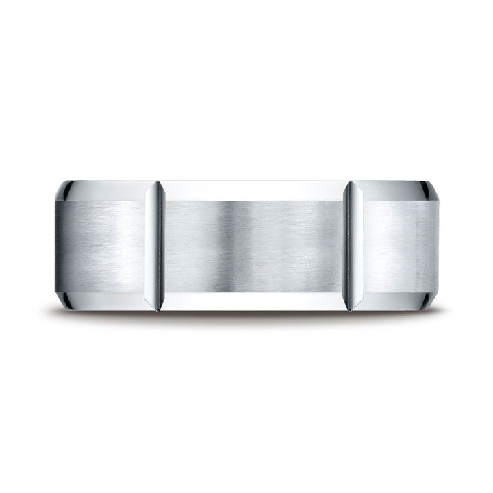 แหวนดีไซน์แกะสลักผิวด้านขนาด 8 มม. รุ่น Platinum Comfort-fit นี้มีร่องแนวตั้งที่แข็งแรงตามแนวกลาง เพื่อรูปลักษณ์ที่ประณีตและทันสมัยแบบอุตสาหกรรม