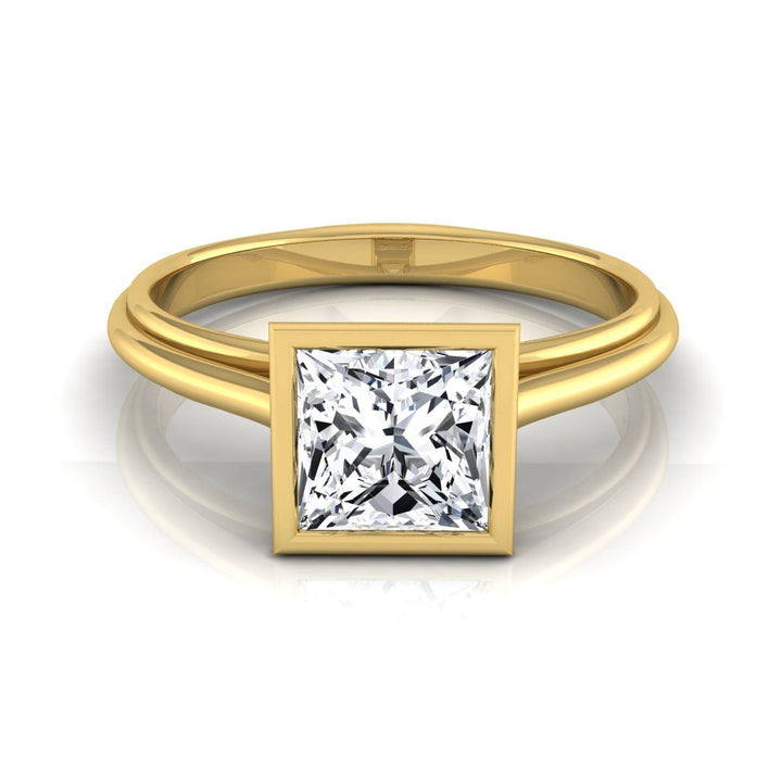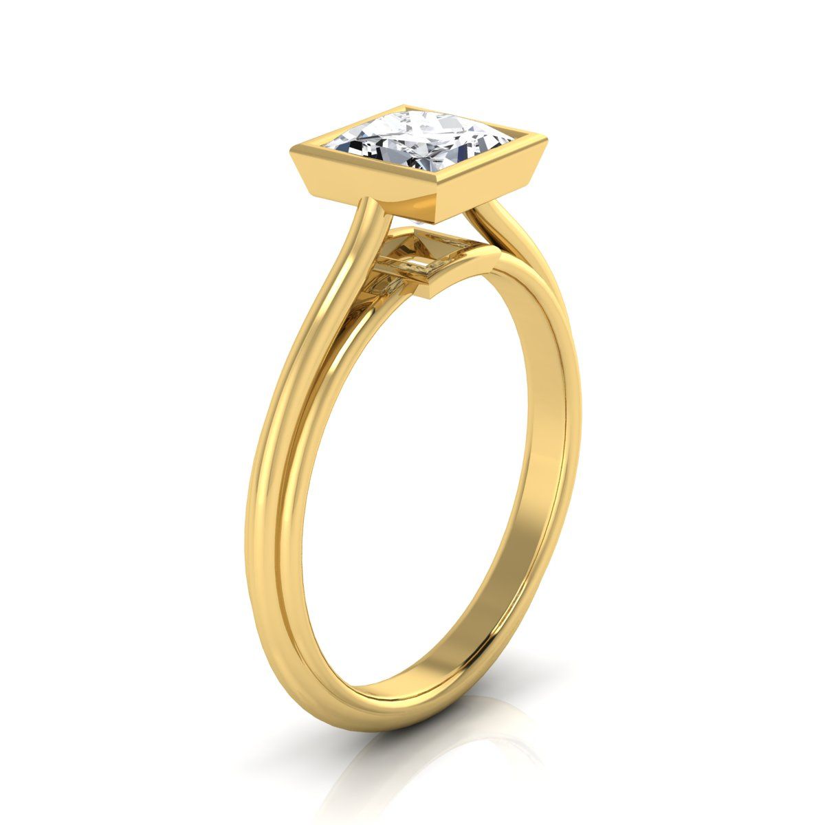 ความสง่างามที่เรียบง่าย, แหวนหมั้นเพชรทรงเจ้าหญิงนี้แสดงให้เห็นเพชรเดี่ยวที่ตั้งด้วยขอบในตัวเรือนทองคำเหลือง 14 กะรัตคลาสสิก.