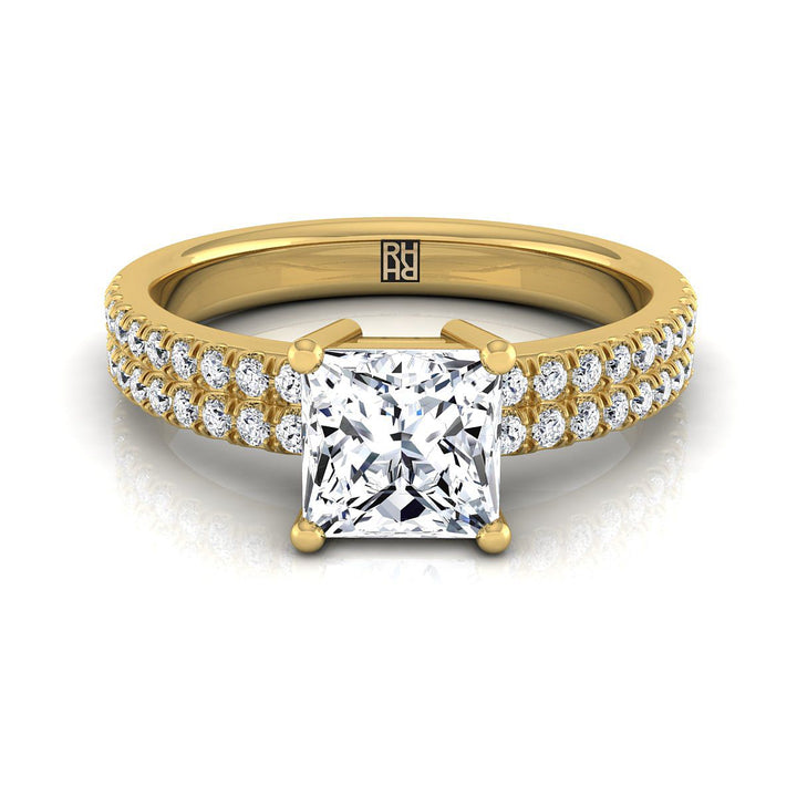 แหวนหมั้นเพชรทรงเจ้าหญิง 14K ทองเหลืองแถวคู่ประดับเพชร 1/4ctw