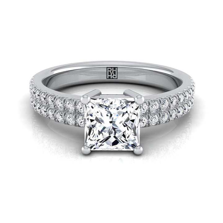 แหวนหมั้นเพชรทรงเจ้าหญิง 18K ทองคำขาว แถวคู่แบบปาเว่ - 1/4 กะรัตรวม