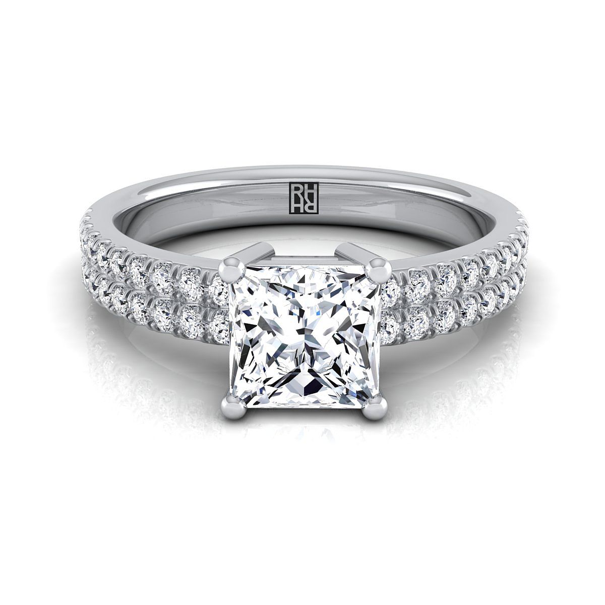 แหวนหมั้นเพชรทรงเจ้าหญิงแพลตตินัม แถวคู่ประดับเพชรแบบปาเว่ - 1/4ctw