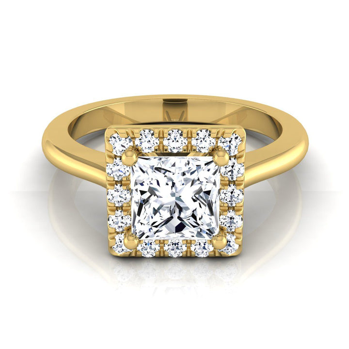 แหวนหมั้นเพชรทรงเจ้าหญิงแบบคลาสสิกฮาโล่ฝรั่งเศสประดับเพชร 14K ทองคำเหลือง - 1/4ctw