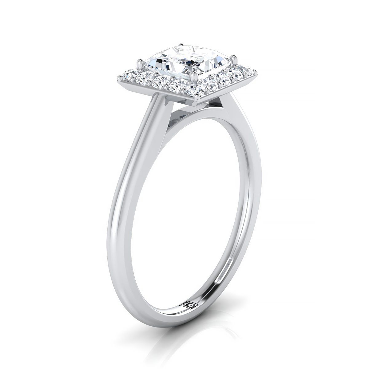 แหวนหมั้นสไตล์คลาสสิกแบบเจ้าหญิงนี้มีการประดับเพชรเจียระไนแบบฮาโลพาเว่ที่ส่องประกายอย่างงดงาม (h-i/vs 0.20 Ctw) ซึ่งถูกจัดวางอย่างสวยงามในตัวเรือนทองคำขาว 18 กะรัตแบบคลาสสิก