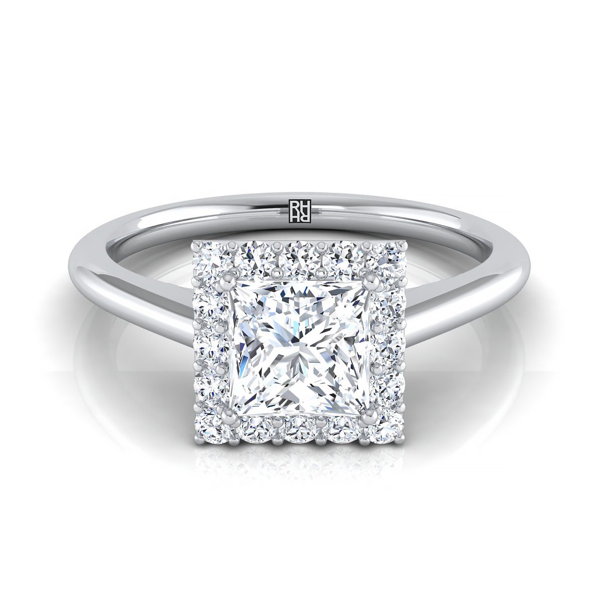 แสดงสไตล์คลาสสิก แหวนหมั้นแบบเจ้าหญิงคัทฮาโลพาเว่แสดงเพชรเจียระไนประกายแวววาว (h-i/vs 0.20 Ctw) ที่ตั้งอย่างสวยงามในตัวเรือนแพลตตินัมคลาสสิก