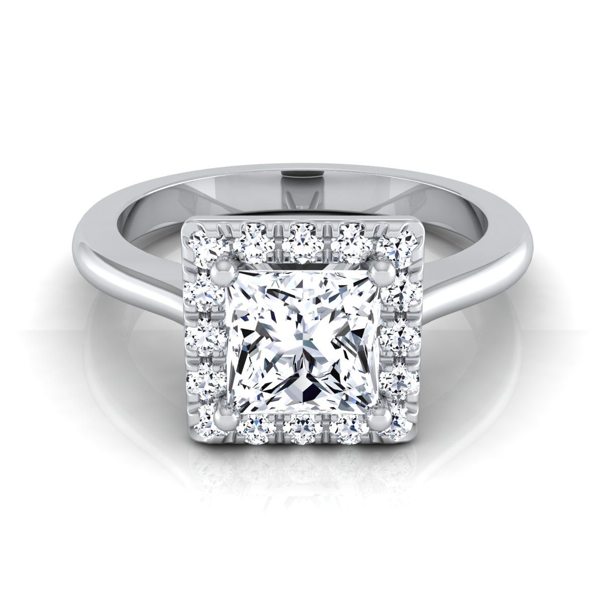 แหวนหมั้นเพชรทรงเจ้าหญิงแพลทินัม คลาสสิกฮาโล ฝรั่งเศสปาเว่ - 1/4ctw