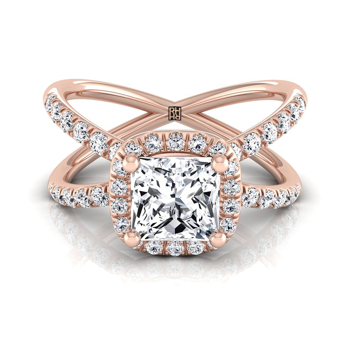 แหวนหมั้นเพชรทรงเจ้าหญิงแบบไขว้เปิดฝรั่งเศสประดับเพชร 14K โรสโกลด์ - 1/2ctw