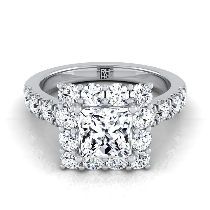 แหวนหมั้นสไตล์หรูหราฝรั่งเศสประดับเพชรทรงเจ้าหญิงแพลทินัมแบบพาเว่ฮาโล -1-1/10ctw