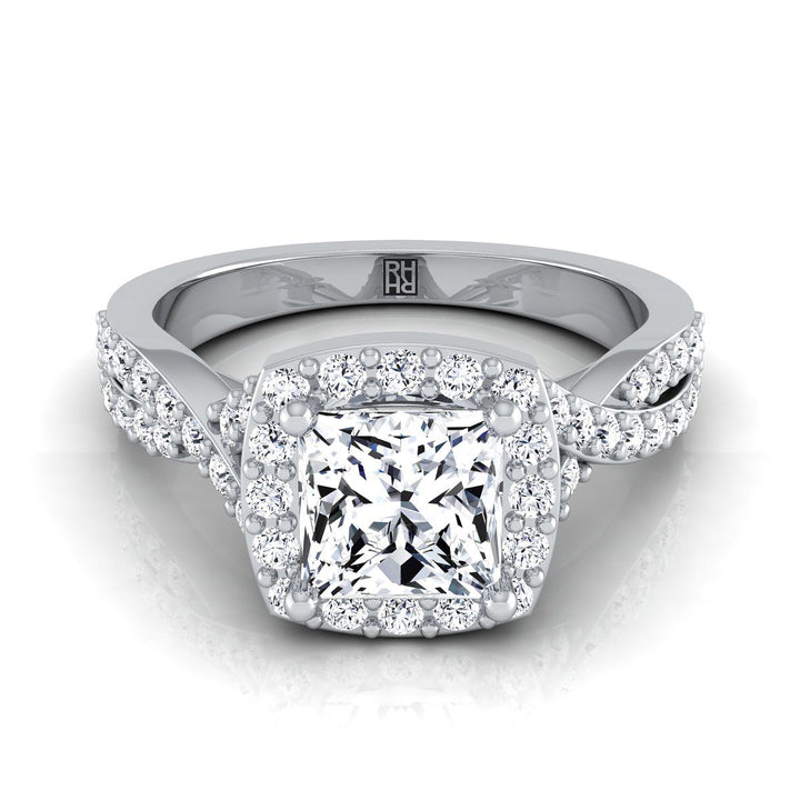 คลาสสิกพร้อมความโดดเด่นแบบกล้าหาญ แหวนเพชรทรงเจ้าหญิงแบบฮาโลที่มีแถบพันเกลียวประดับด้วยเพชรเจียระไนแบบบริลเลียนต์ (h-i/vs 0.40ctw) ประดับอย่างสวยงามในตัวเรือนทองคำขาว 14 กะรัตแบบคลาสสิก