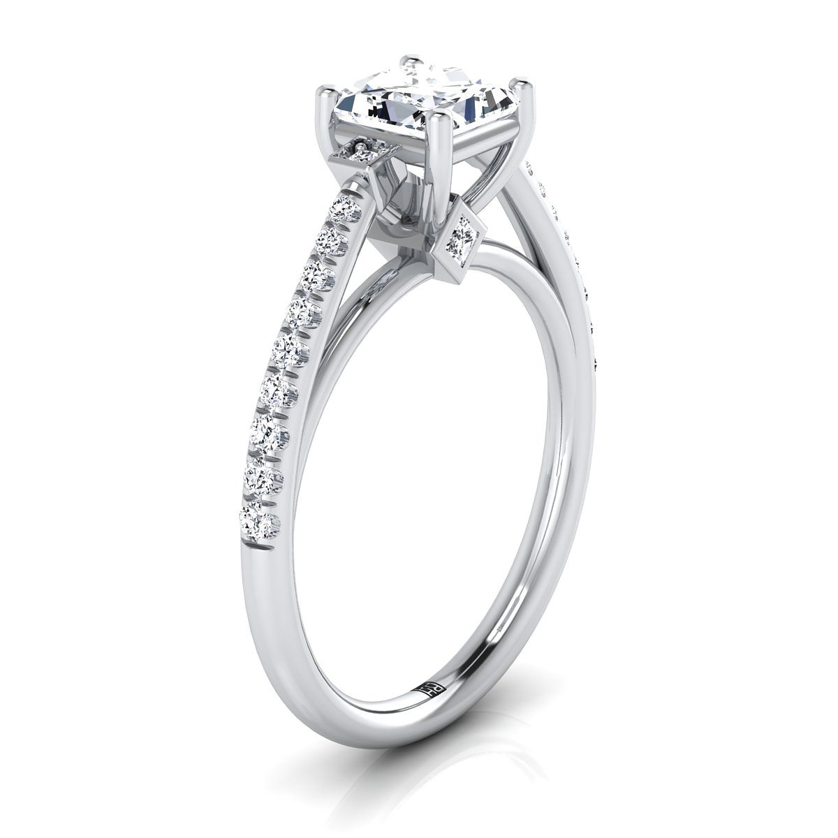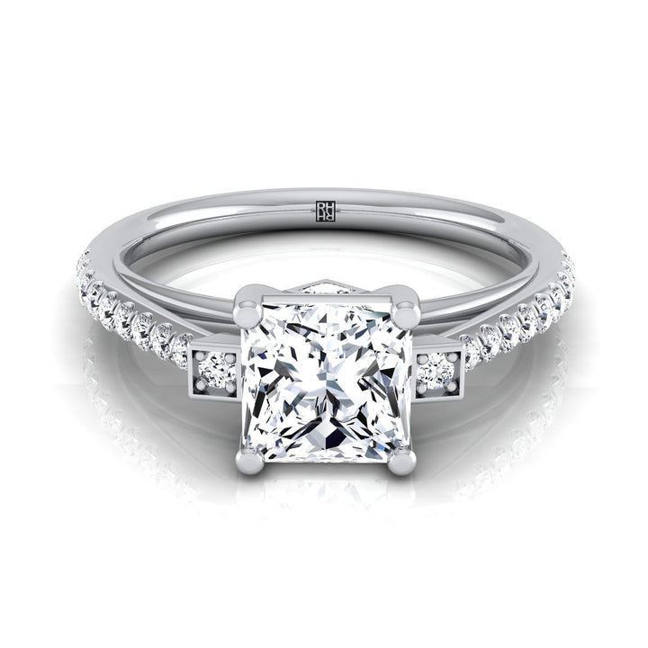 แสดงออกถึงสไตล์ที่สง่างาม แหวนหมั้นเพชรทรงเจ้าหญิงนี้นำเสนอเพชรทรงเจ้าหญิงและเพชรทรงบริลเลียนต์ (h-i/vs 0.33 Ctw) ที่ประดับอย่างสวยงามด้วยการฝังแบบเพฟและแบบบีเซลในทองคำขาว 14 กะรัต