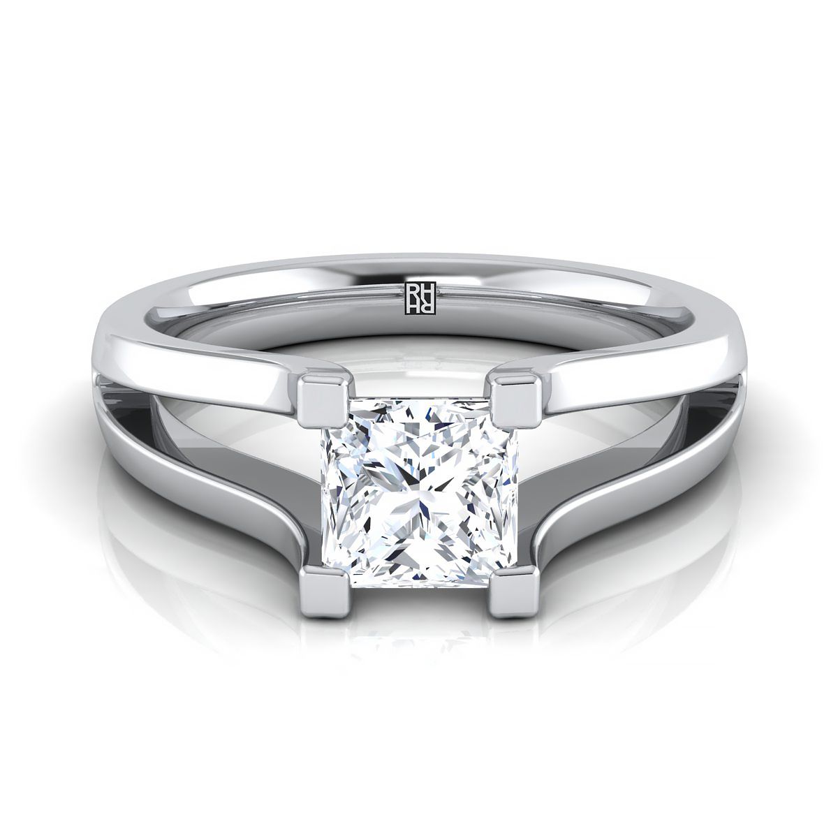แหวนหมั้นเดี่ยวทองคำขาว 18K เจียระไนทรงเจ้าหญิง แบบเรียบ ขัดเงาสูง แบบแยกช้าง