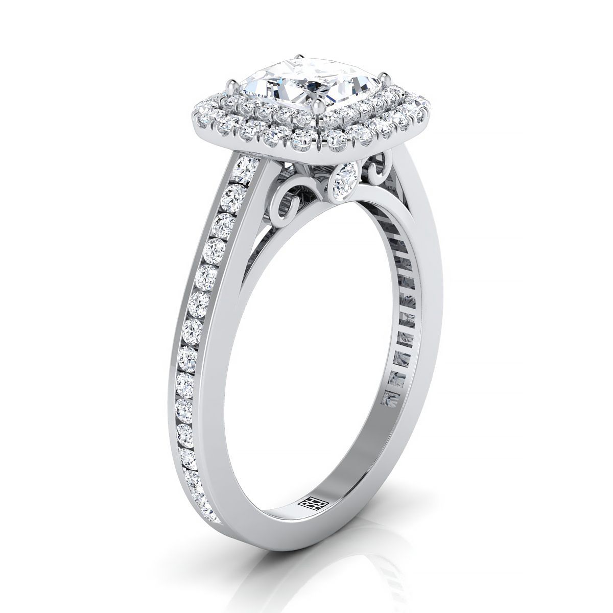 แหวนหมั้นทรงเจ้าหญิงแบบดับเบิลเพฟ ฮาโลว์ ที่ทำด้วยมืออย่างประณีตนี้ โชว์เพชรเจียระไนแบบบริลเลียนต์คัต (h-i/vs 0.60ctw) ที่ประดับอย่างสวยงามในตัวเรือนทองคำเหลือง 18 กะรัตแบบคลาสสิก