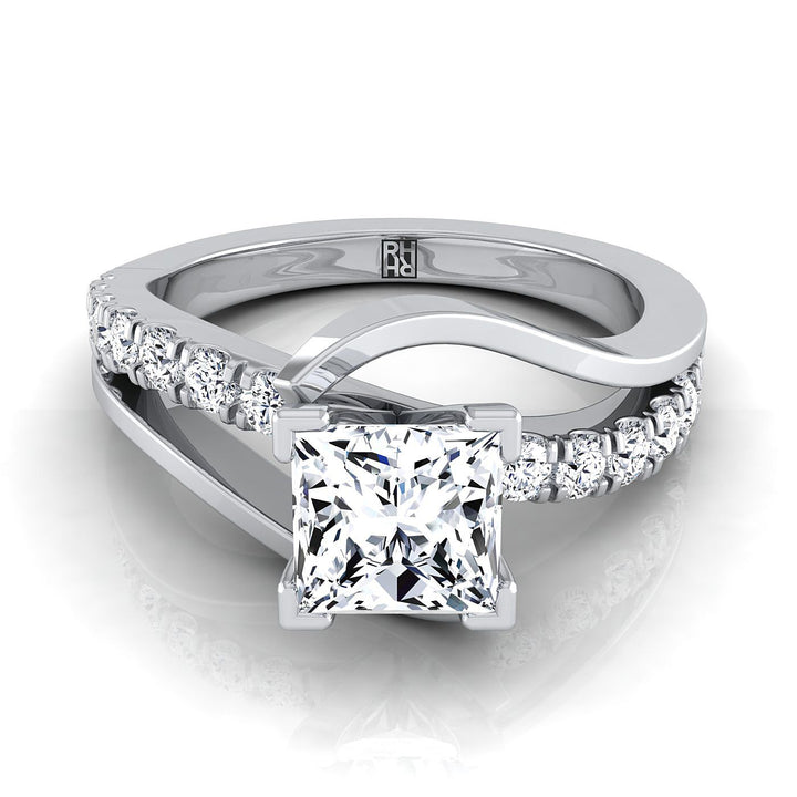 แหวนหมั้นเพชรแบบบิดเกลียวประดับเพชรปาเว่ทรงเจ้าหญิงแพลตตินัม - 3/8ctw
