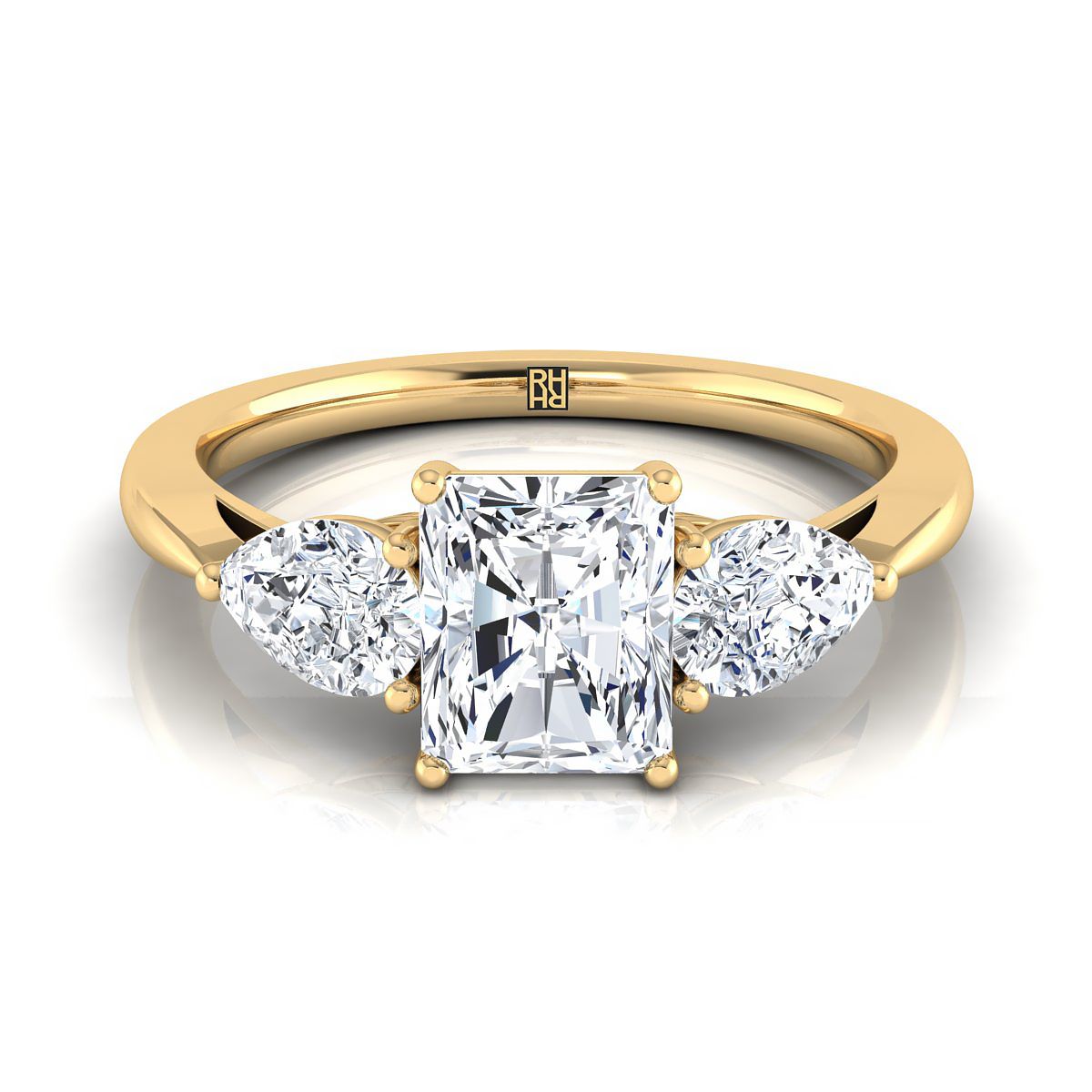 แหวนหมั้นเพชรสามเม็ดรูปทรงลูกแพร์ที่เข้าคู่กันอย่างสมบูรณ์แบบ ตัดแบบ Radiant กลางเพชร 14K ทองคำเหลือง - 7/8ctw