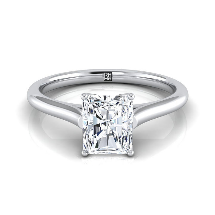 แหวนหมั้นเดี่ยวแบบคอมฟอร์ตฟิตสไตล์วิหาร ตรงกลางเจียระไนแบบรัศมีแพลทินัม