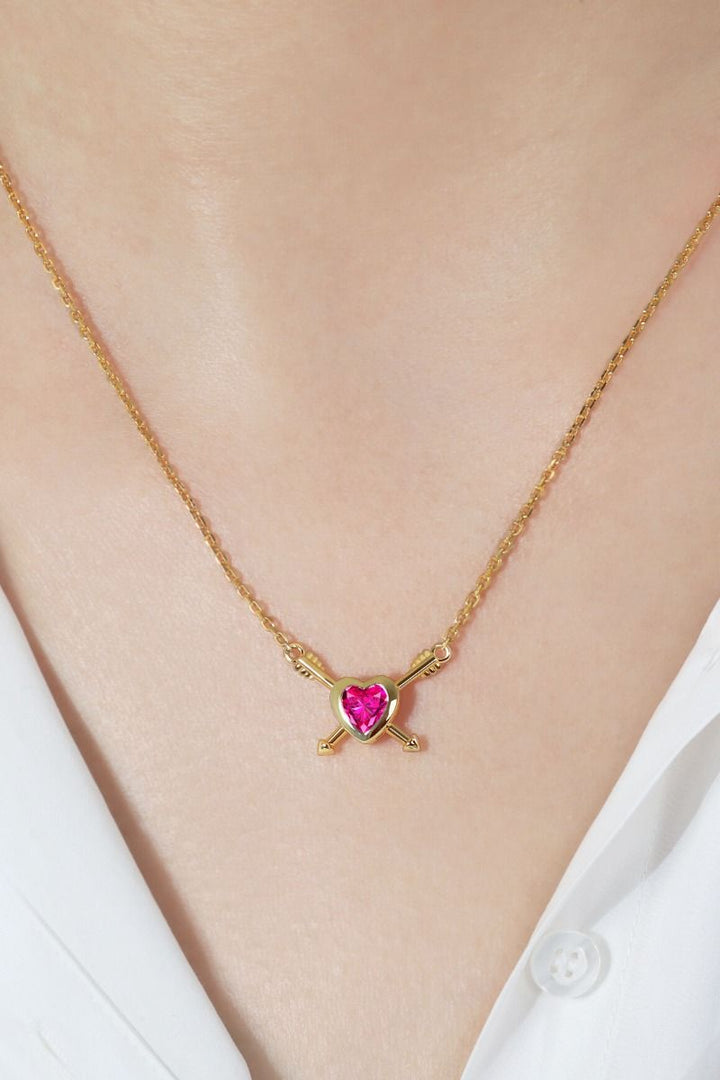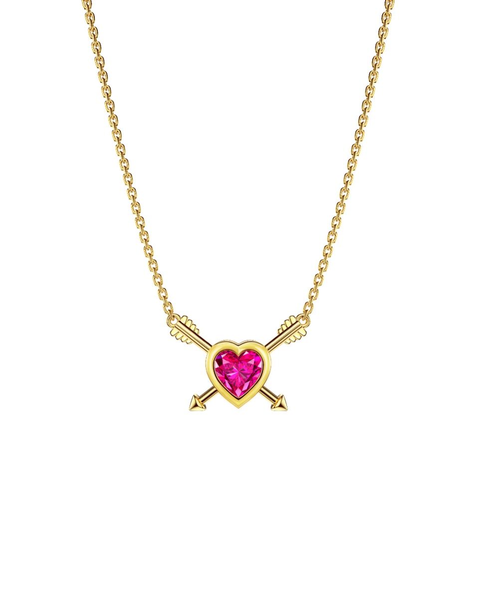 ROCKHER สร้อยคอจี้รูปหัวใจสีชมพูประดับแซฟไฟร์แท้เงินสเตอร์ลิง .925 พร้อมลูกศรคู่ - 18"