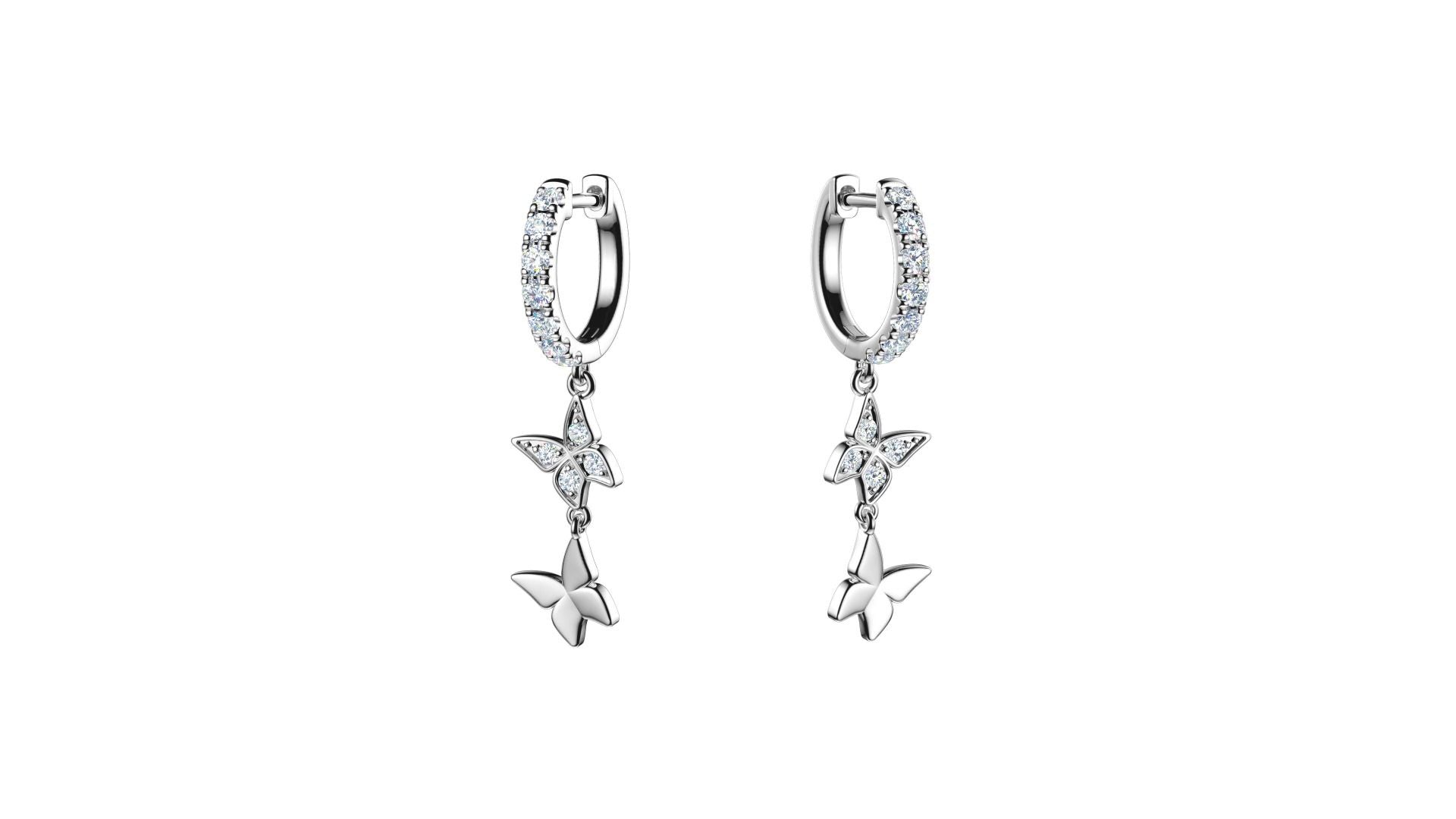ROCKHER .925 เงินสเตอร์ลิง ผีเสื้อคู่ ประดับด้วยคิวบิก ซิริโคนสีขาว ต่างหูห้อยแบบมีความหวัง