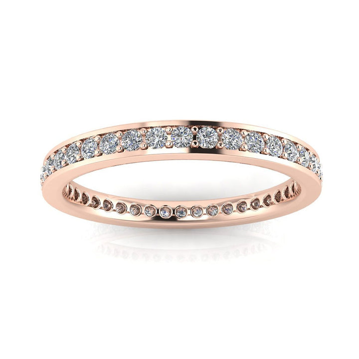แหวนเพชรเจียระไนแบบกลมเจิดจรัส ประดับแบบแชนเนลเพฟ ดีไซน์วงนิรันดร์ ในทองกุหลาบ 14k (น้ำหนักรวม 0.47 กะรัต) ขนาดแหวน 6.5