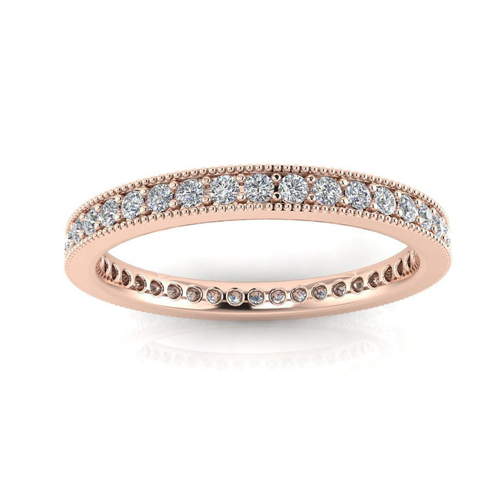 แหวนวงนิรันดร์เพชรทองกุหลาบ 14k สไตล์หรูหรา ประดับด้วยเพชรทรงกลมเจียระไนแบบ Brilliant Cut ขนาด 0.96 กะรัต (2 มม.) สี h-i ความสะอาด Vs แบบ Pave & Milgrain-set