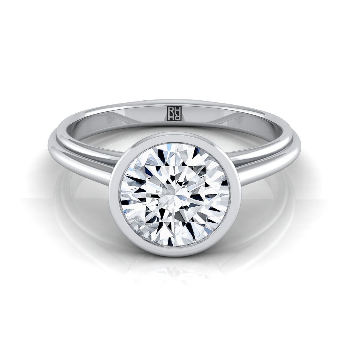 ความสง่างามที่เรียบง่าย แหวนหมั้นเพชรนี้นำเสนอเพชรเดี่ยวแบบติดตั้งด้วยขอบในตัวเรือนแพลตตินัมคลาสสิก