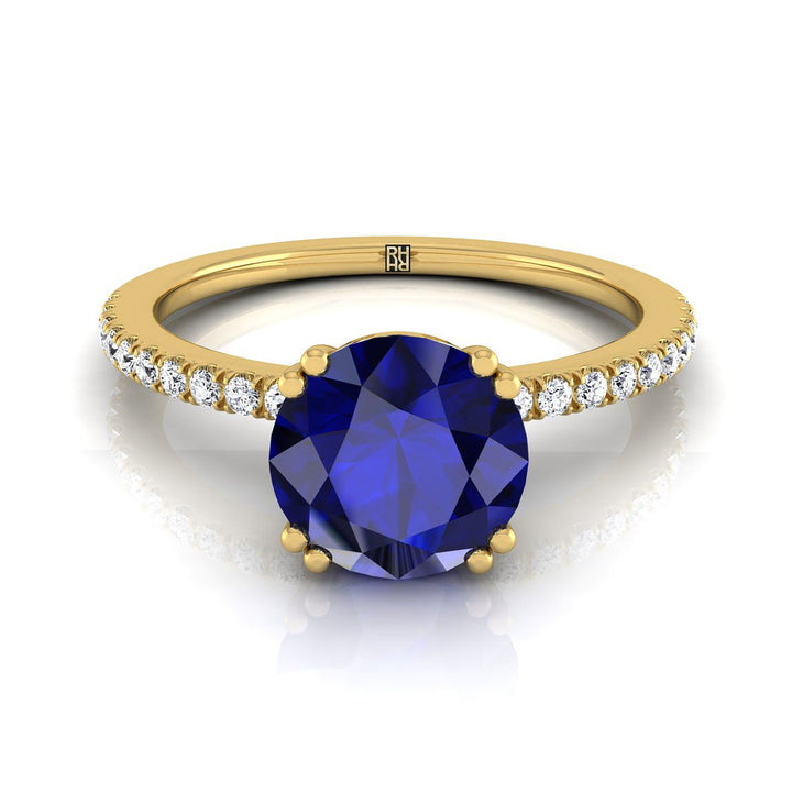 แหวนหมั้นเพชรแบบหนามคู่ฝรั่งเศสเรียบง่ายประดับแซฟไฟร์ทรงกลมเจียระไนแบบบริลเลียนท์ทองคำเหลือง 18K - 1/6ctw