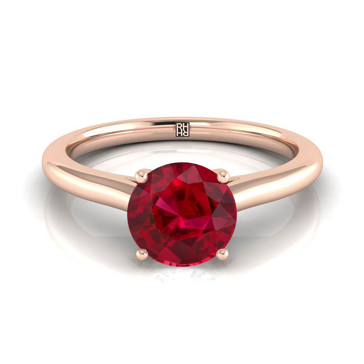 แหวนหมั้นเดี่ยวแบบหนีบด้วยกรงเล็บทรงกลมเจียระไนแบบ Brilliant ทับทิมทองกุหลาบ 14K แบบสวมใส่สบาย