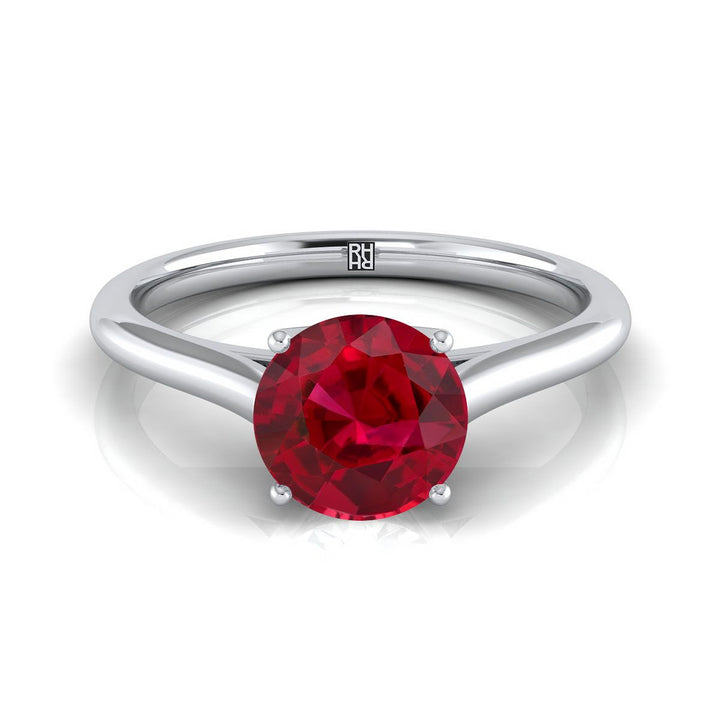 แหวนหมั้นเดี่ยวแบบคอมฟอร์ตฟิตสไตล์วิหารทับทิมทรงกลมเจียระไนเพชรพลาตินัม