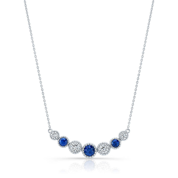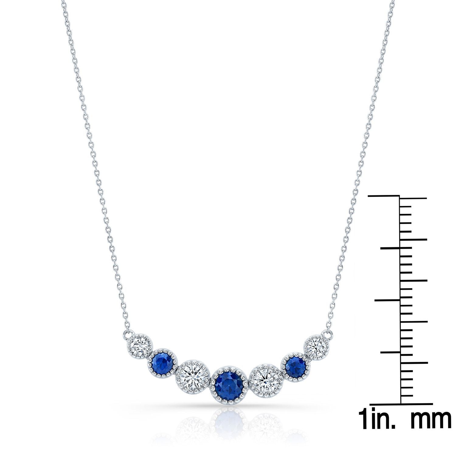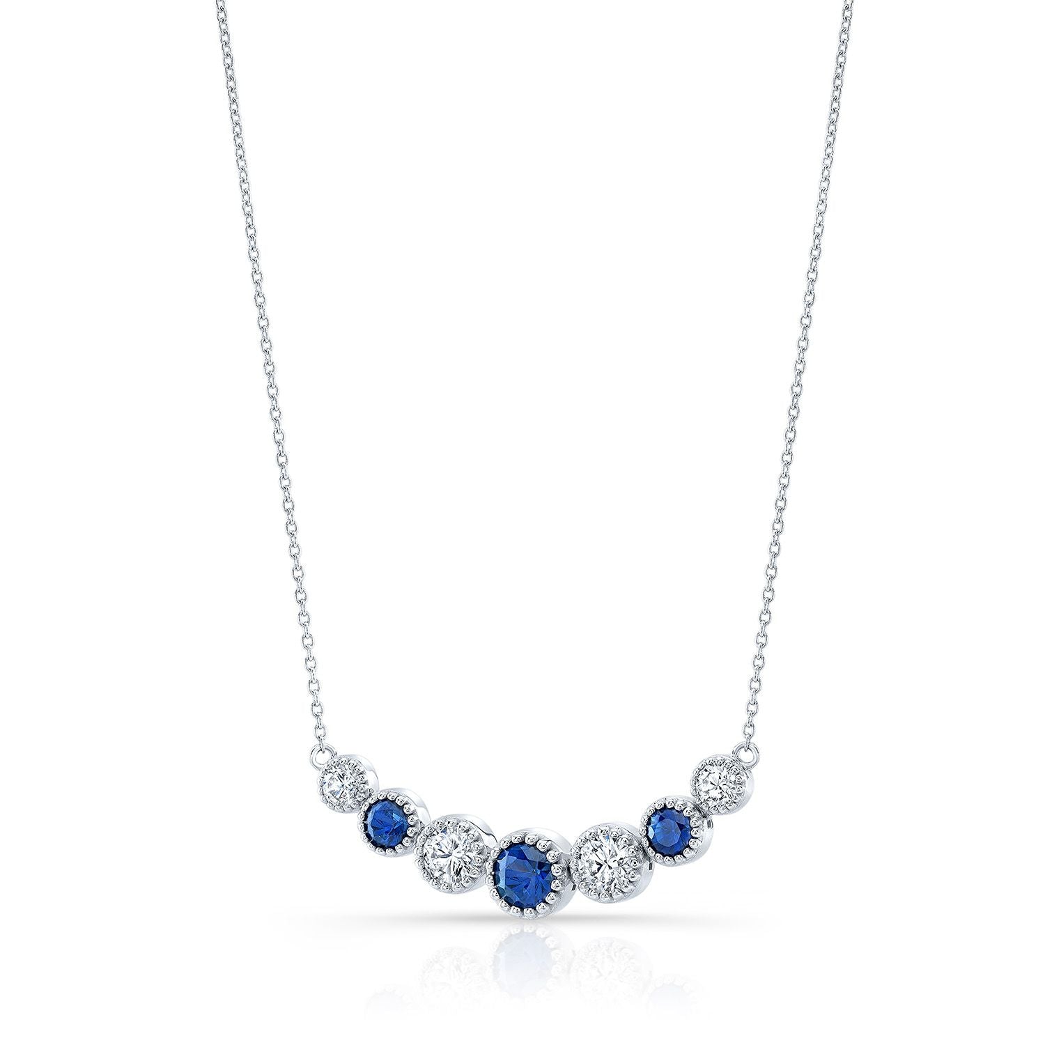 Sapphire And Diamond Graduated 7-stone Necklace With Millgrained Edging In 14k White Gold
