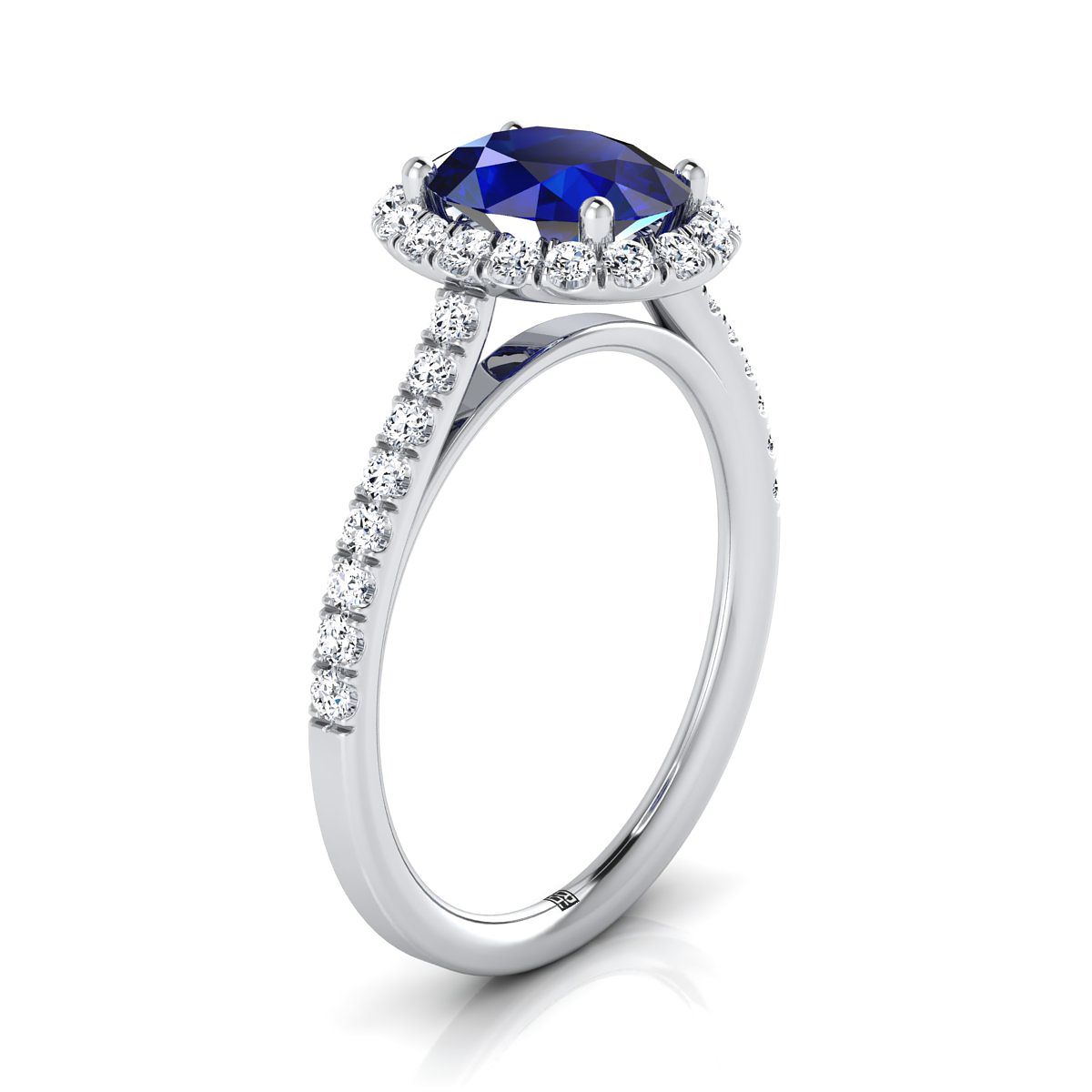 แหวนหมั้นเพชรฝรั่งเศสแบบปาเว่รูปวงรีประดับแซฟไฟร์ขนาดเล็ก 18K ทองคำขาว - 3/8ctw