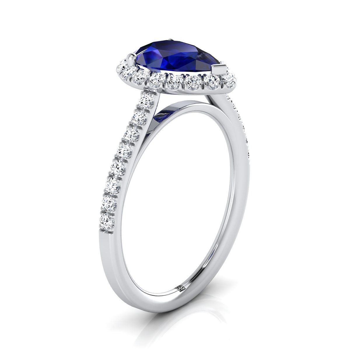 แหวนหมั้นเพชรฝรั่งเศสแบบพาเว่ทรงวงแหวนเล็กพร้อมไพลินทรงลูกแพร์กลางแพลทินัม - 3/8ctw