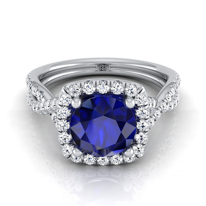 แหวนหมั้นทองคำขาว 18k พร้อมเพชรทรงกลมเจียระไนแบบ Brilliant จำนวน 58 เม็ด น้ำหนักรวม 0.45 กะรัต และไพลินทรงกลมขนาด 1.7 มม.