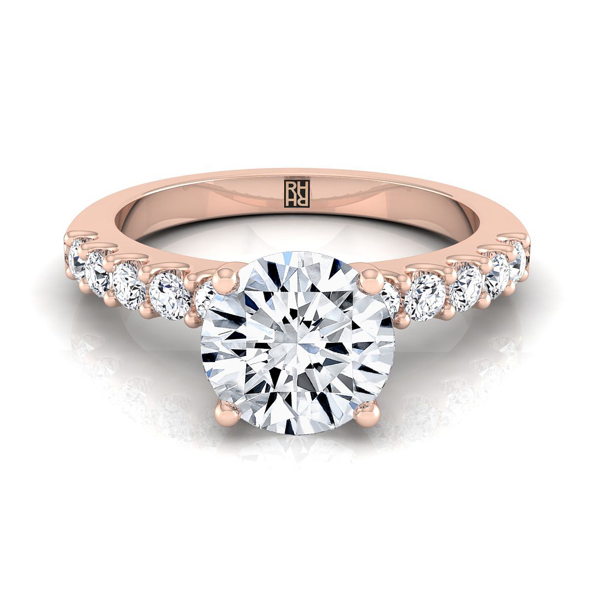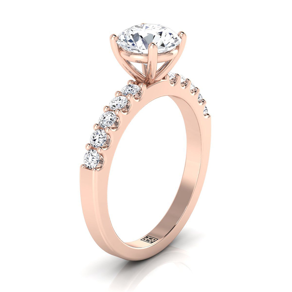 ผลิตด้วยมืออย่างประณีตในทองกุหลาบแท้ 14k แหวนหมั้นเพชรแบบตั้งด้วยกรงเล็บร่วมนี้สร้างฐานที่สมบูรณ์แบบสำหรับเพชรเม็ดเดี่ยวคลาสสิกที่จะคงอยู่ตลอดชีวิต