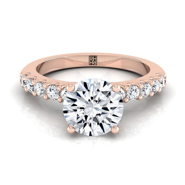 แหวนหมั้นเพชรแบบเรียบง่ายเส้นตรงทรงกลมเจียระไนแบบ Brilliant ประดับเพชรแบบ Pave ทองกุหลาบ 14K