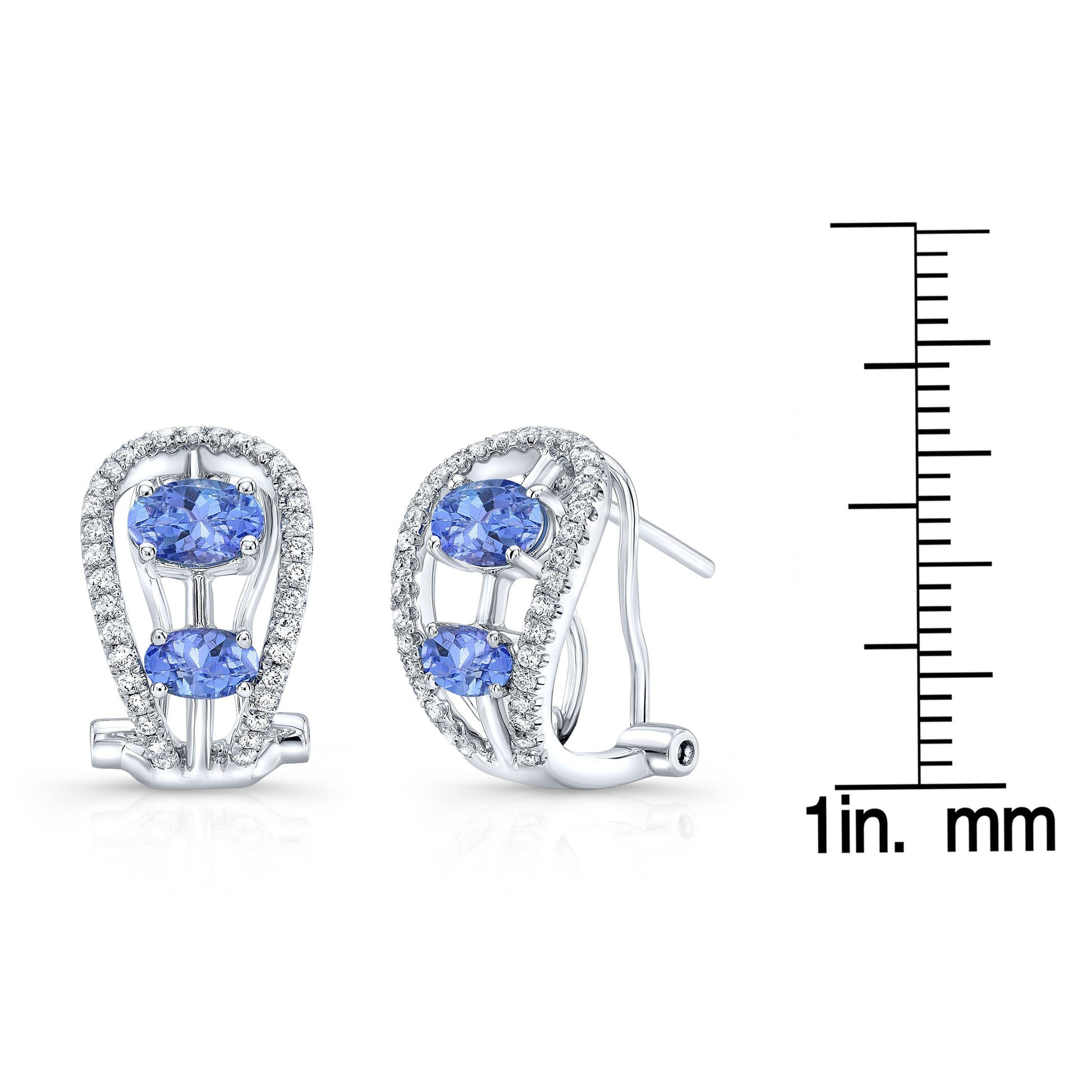14k White Gold Earrings With 4 Oval Tanzanites At 6x4mm And 5x3mm And 70 Round Brilliant Diamonds Weighing 0.33 Carats
